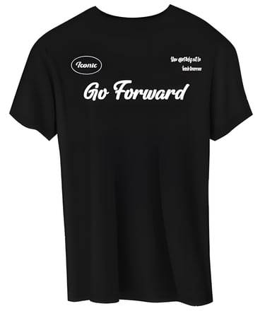 Polera Iconic "Go Forward" - Edición Fundador Presentamos la primera prenda en la historia de la marca. Esta polera exclusiva del Drop #1 cuenta con un diseño minimalista en negro, el logo Iconic al frente y el diseño "Go Forward" en el reverso. Una edición irrepetible que marca el comienzo.